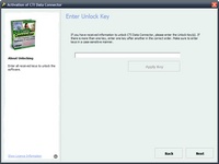 After requesting the Unlock Key by E-Mail, the screen shown below will appear during each start of the program. Type in the Unlock Key you got back by e-mail or fax. Press the button Next. If the Activation is successful, the screenActivation finished is displayed.
