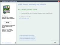 If the serial number is not entered until the end of the evaluation period, a special message screen with a link AND a button to buy is displayed. It is not possible to continue without activating the product.