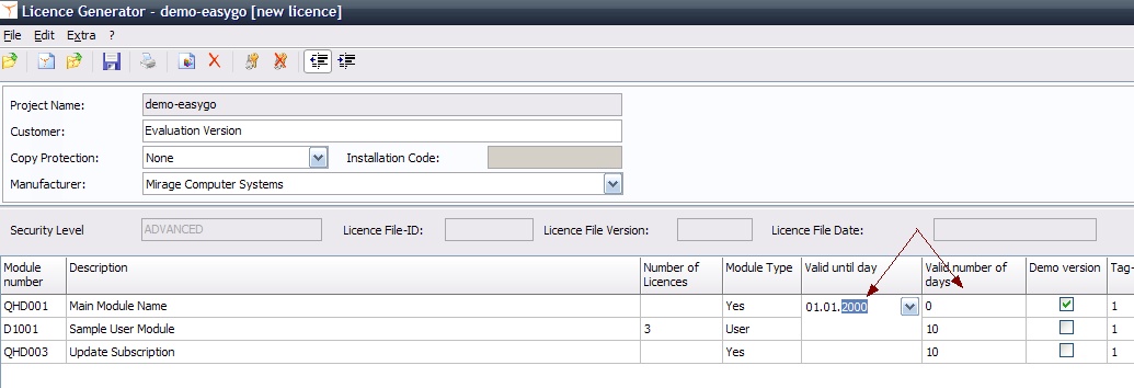 Navigation: Activation and License Screens with EasyGo > Additional Start Options > No Evaluation version - Serial Number needed |