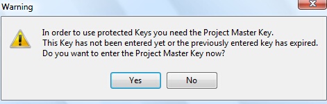 You have to enter the Project Master Key and specify, how long the password should be valid. Storing the password makes sense. Otherwise you would have to type in the password every time you open the project.
