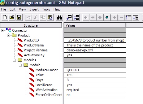 This file includes the definition, with which options the Serial Number should be created. Use the same values like you would use within the License Generator and manual generation. You have to change in the sample file: