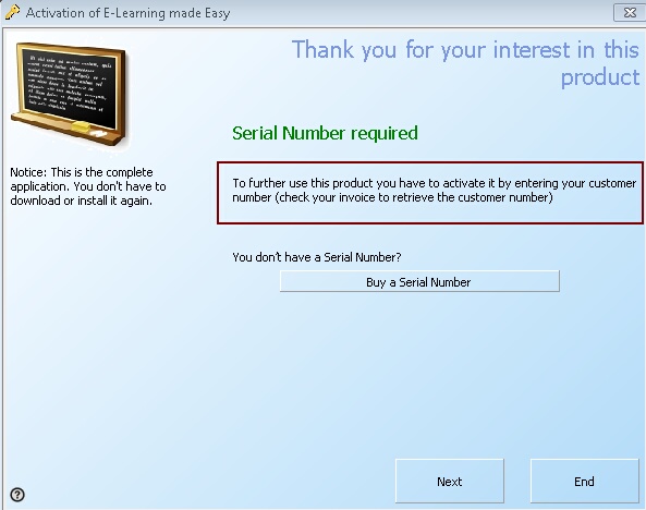 20657, "To further use this product you have to activate it by entering a Serial Number."