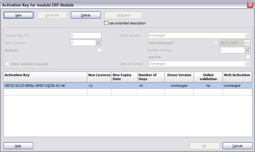 The Activation Key is automatically copied to the clipboard, e.g. to e-mail the key. You can copy a selected key into the Clipboard using the button Clipboard.