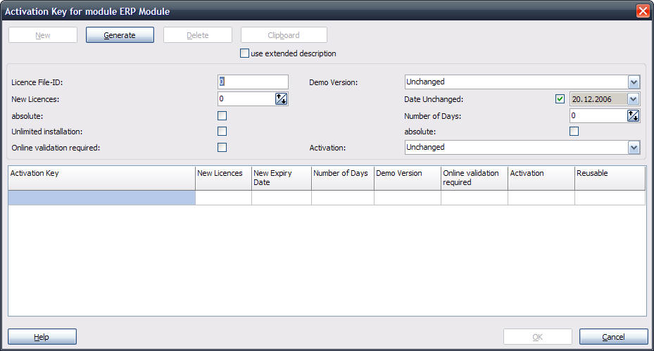 If an Activation Key is generated while a license file is opened, then the Activation Key is stored additionally in the license file. There is a security request and the storage of the key can alternatively be prevented.