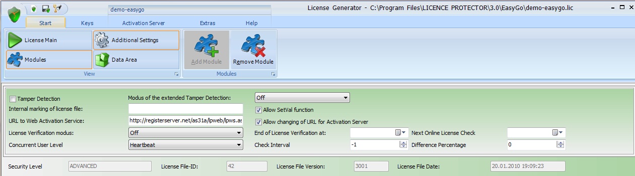 | • | Allow SetVal function - only deselect, if you never change a license file via DLL calls - see Anti Hacker Strategies |