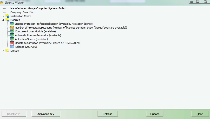 | • | The Activation Server 3.1 supports all features from Licence Protector 3.0. It is mandatory to upgrade to Activation Server version 3.1 if the 3.0.x DLL is used |