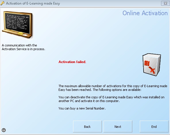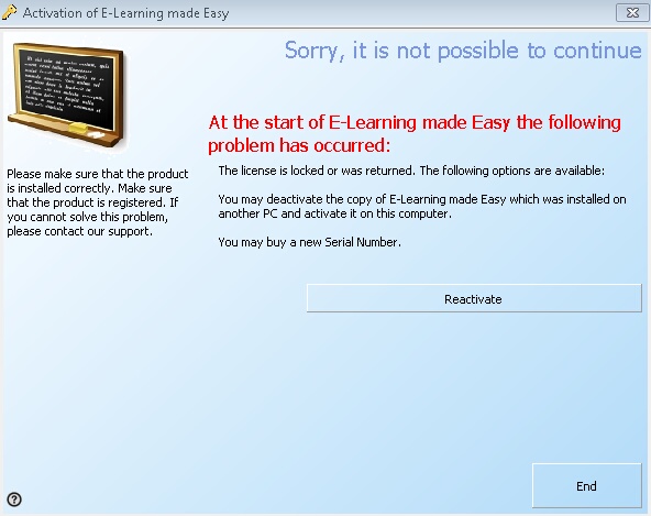 The user can now try to reactivate the license. This requires an online connection. If it is not in use by another PC, the license is reactivated.
