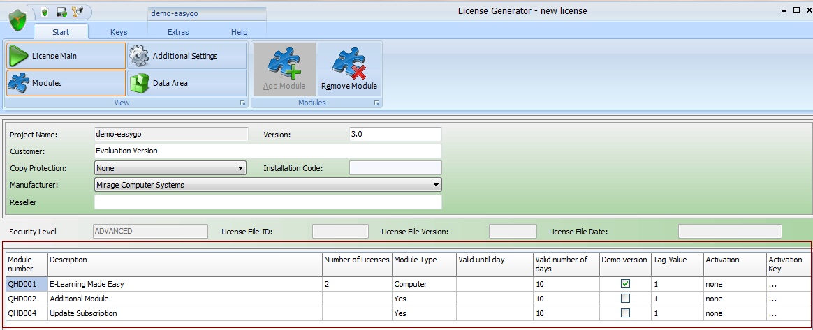. The add module button is deactivated if all modules are assigned. You can also click on the module description to select another module.