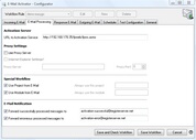 | • | Forward erroneous process messages to - sends a copy of the E-Mail, where an activation failed (e.g. because the Serial Number / ID) was already used, to the specified E-Mail address |