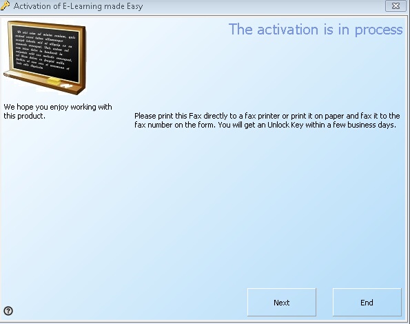 Request Unlock Key After clicking on the button Next open a report with the hardware IDs and license information opens. Press print to print the report and then fax it to the number provided in the report. You will get an Unlock Key back within 2-3 business days.