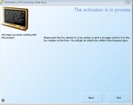 After requesting the Unlock Key by fax, the screen shown below will appear during each start of the program. Type in the Unlock Key you got back by e-mail or fax. Press the button Next. If the Activation is successful, the screenActivation finished is displayed. |