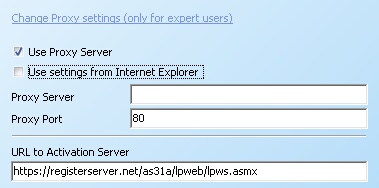 Change Proxy server settings By default, the proxy server settings from the Internet Explorer are retrieved. The user can change the settings.