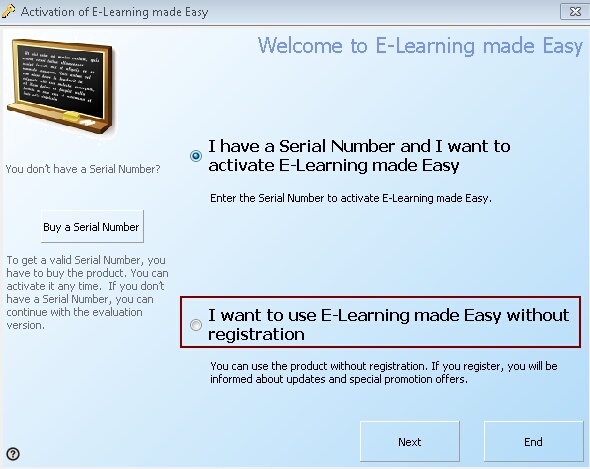 This option allows using the evaluation version for an unlimited time but brings up an registration screen during each program start.