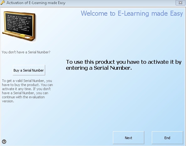 Without a Serial Number the user cannot continue. He has to type in theUnlock Key before the application can be used. Without the Serial Number or Unlock Key, only the End button can be used.