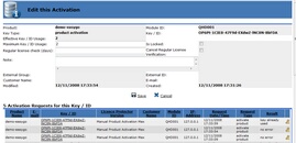 This view gives you an overview of all Activation Requests for one single Serial Number / ID / Activation Key.