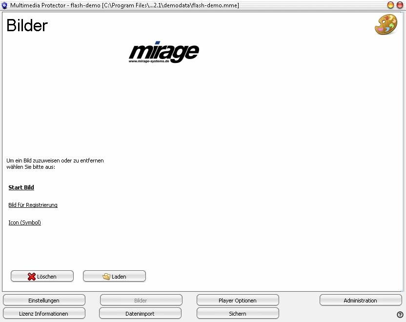 Klicken Sie auf die Schaltfläche "Laden" um das Bild dem ausgewählten Bildtyp zuzuweisen. Diesen können Sie durch Klicken auf den entsprechenden Link ändern. Um das Bild zu entfernen, klicken Sie auf die Schaltfläche "Löschen".