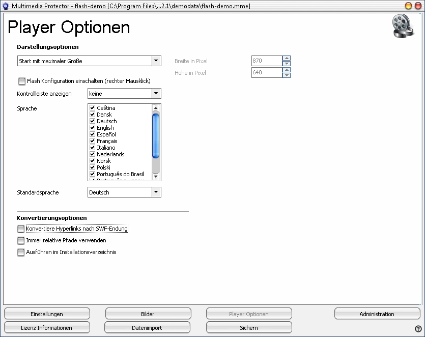 Durch diese Option ist es möglich, Dateien, welche im Standard Flash Player nicht wiedergegeben werden, zu konvertieren.
