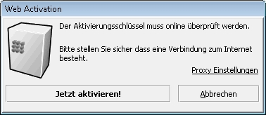 Einige Aktivierungsschlüssel werden Online geprüft und benötigen eine Verbindung zum Internet. Nach Klicken auf die Schaltfläche "OK" erscheint nachfolgendes Dialogfenster.