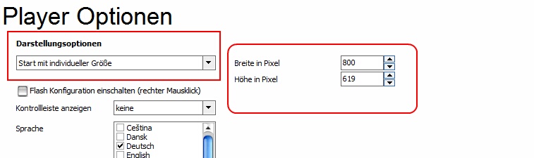 Wenn die Darstellung verzerrt ist, müssen Sie die genaue Auflösung in der Kategorie - Player Optionen angeben, die das Video benötigt. Die Auflösung finden Sie in der Datei xy.html des Camtasia Projektes. Editieren Sie diese Datei und suchen Sie nach der Zeile: var fo = new SWFObject( "myflashproject", "csSwf", "800", "619", "7", "#FFFFFF" ). Der dritte Wert ist die Breite in Pixel, der vierte Wert ist die Höhe.