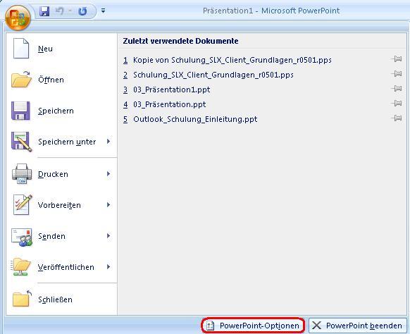 Die nachfolgende Beschreibung bezieht sich auf die Verwendung von PowerPoint 2007. Die zur Ausführung notwendigen Schritte sollten jedoch auch auf ältere PowerPoint Versionen anwendbar sein.