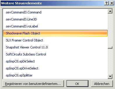 3. Selektieren Sie im nachfolgenden Dialogfenster das "Shockwave Flash Object" und klicken hiernach auf "OK". Klicken und ziehen Sie das Objekt nun an die gewünschte Stelle Ihrer Folie und passen es an die gewünschte Größe an.