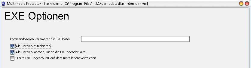 Zusätzlich wird nun ein neuer Link eingeblendet: EXE Optionen. Um den Konfigurationsdialog zu öffnen, klicken Sie auf den Link. Tätigen Sie hiernach folgende Einstellungen: