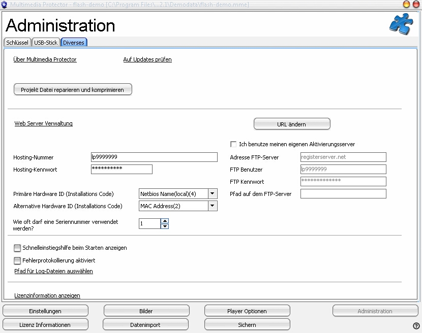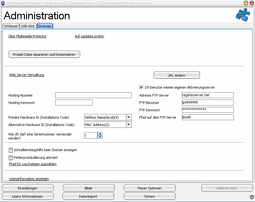 Konfigurieren Sie nun den FTP-Account im Multimedia Protector Generator.