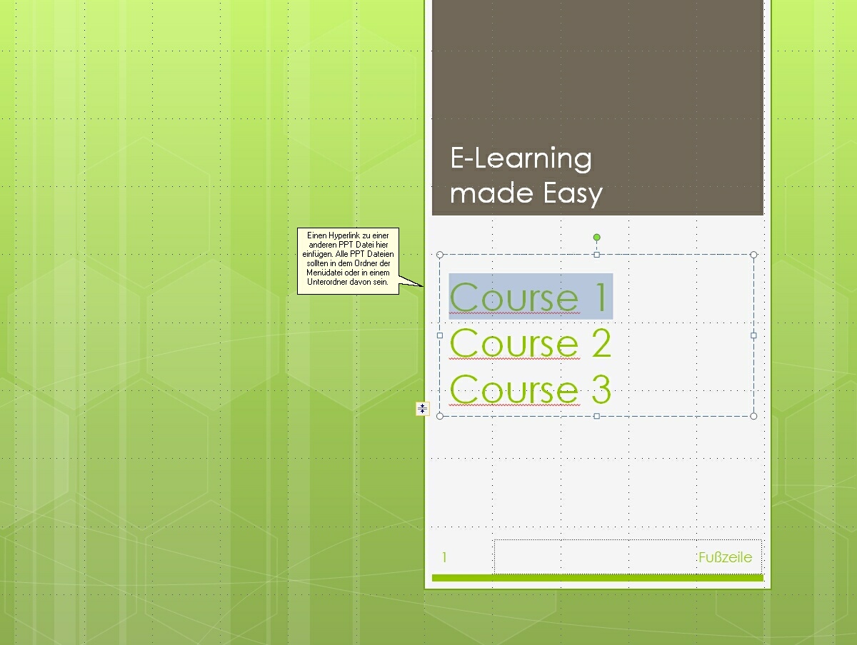 Menue.ppt verlinkt auf Kurs1.ppt und Kurs2.ppt